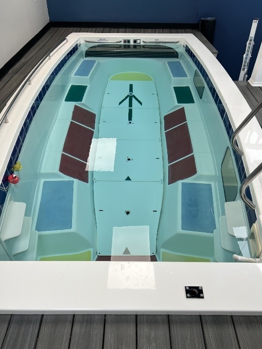 - Turbulence - moving water gently challenges the body to maintain balance and control.